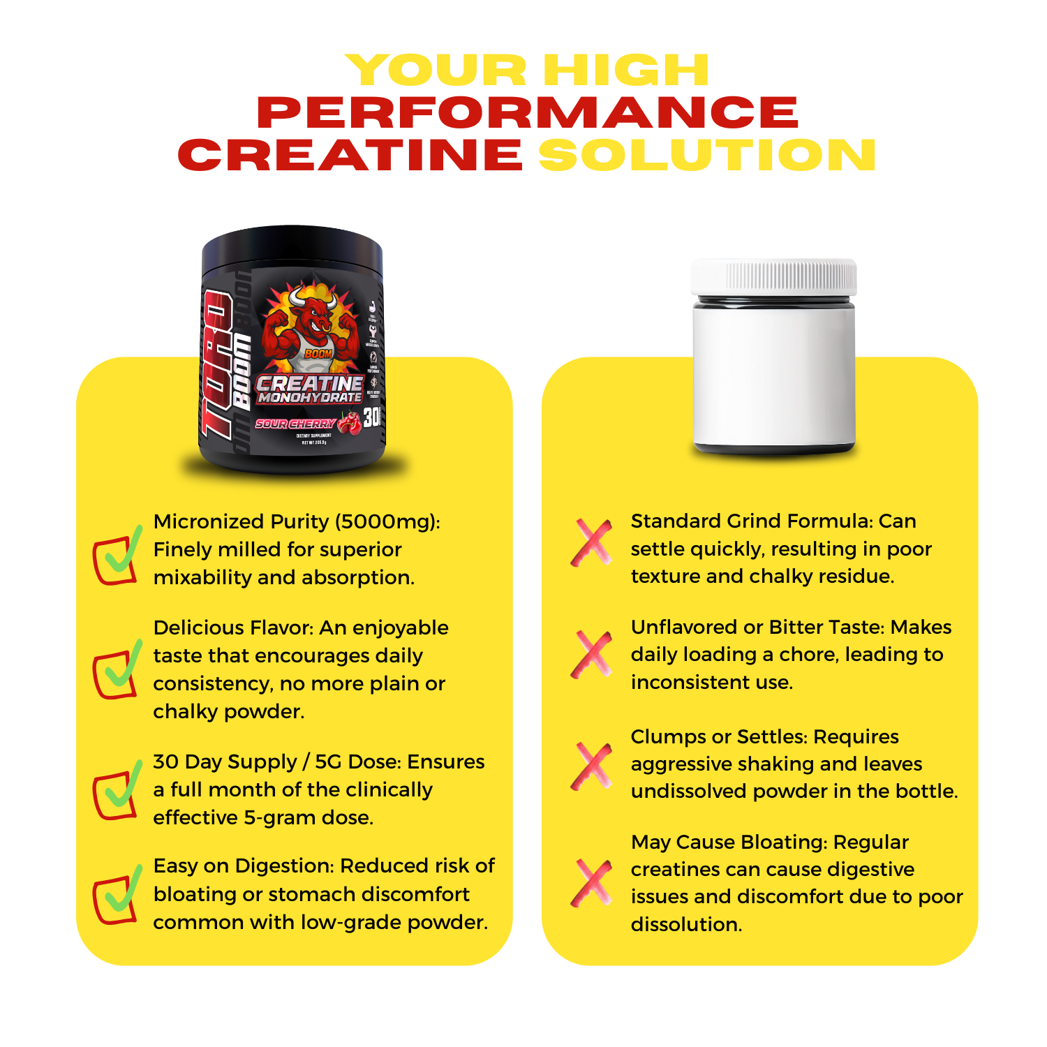 Forget the bitter, gritty powders. TORO BOOM delivers the clinically proven 5g of pure creatine monohydrate per serving, finely micronized for instant dissolution. That means no clumps, no bloating, and no excuses. Just fast absorption, pure strength, and a refreshing taste you’ll crave daily.